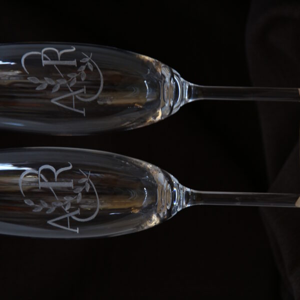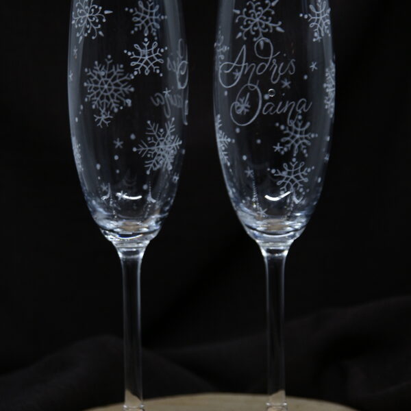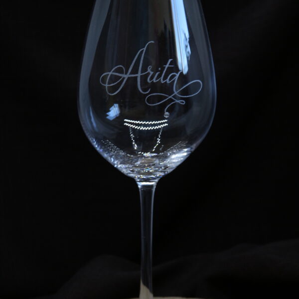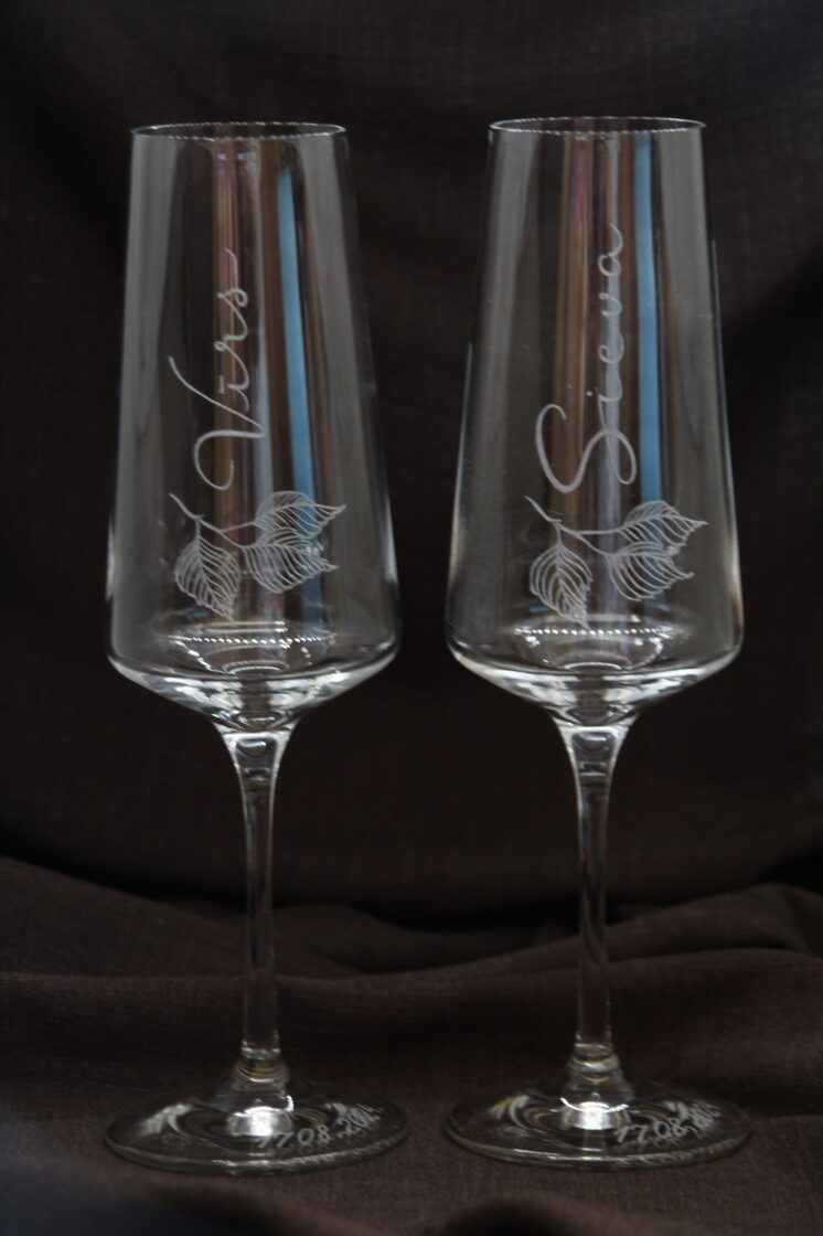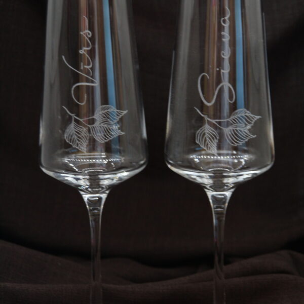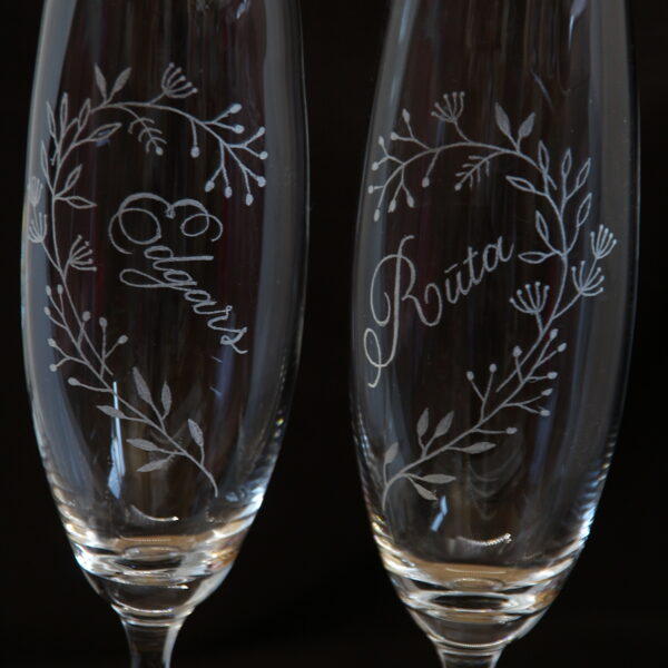 Glāzes vīnam ar zieda gravējumu.