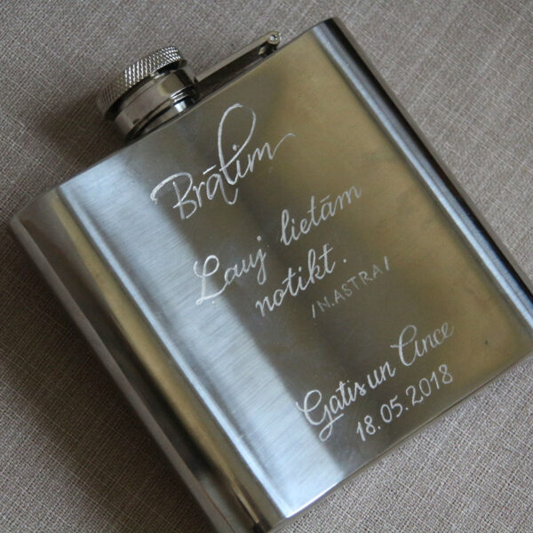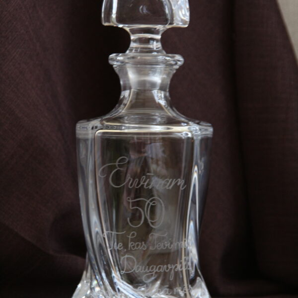 Viskija glāzes ar grav'tu tekstu.