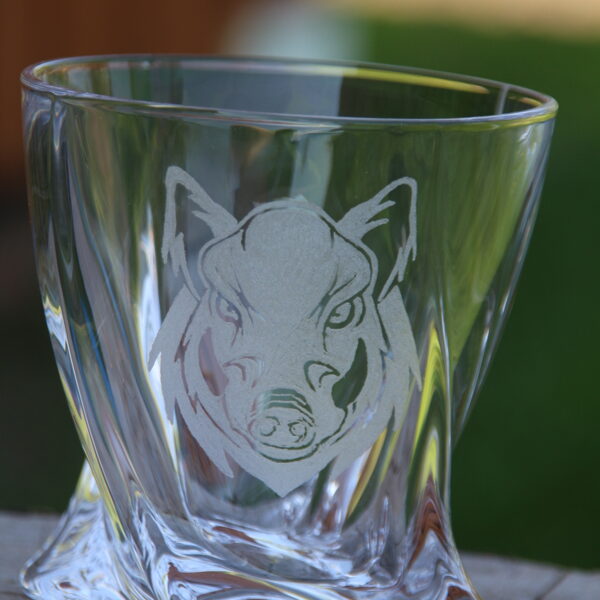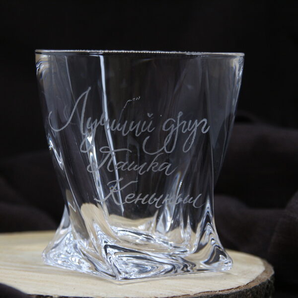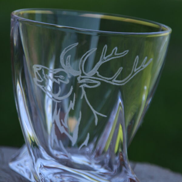 Glāzes viskijam ar gravējumu.